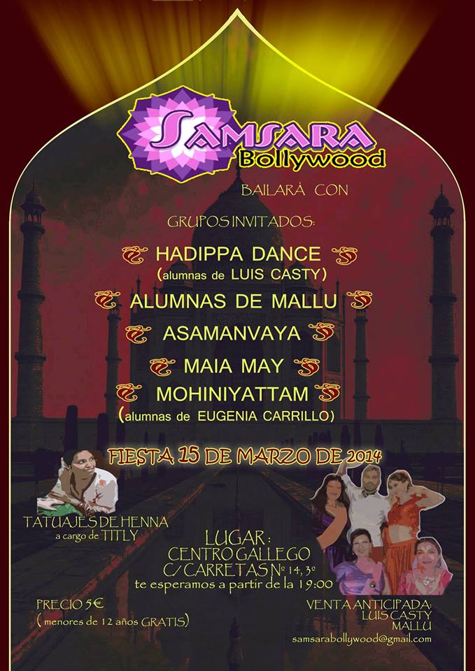 ¡¡¡El sábado 15 de marzo tengo el honor de bailar en el festival de la fiesta de Samsara Bollywood en colaboración con Asamanvaya en el centro Gallego de Madrid!!!